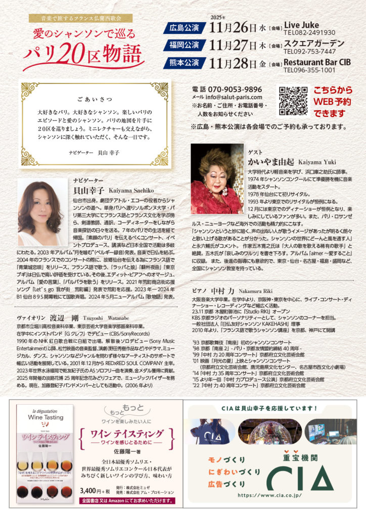 シャンソンで巡る パリ20区物語 西日本ツアー